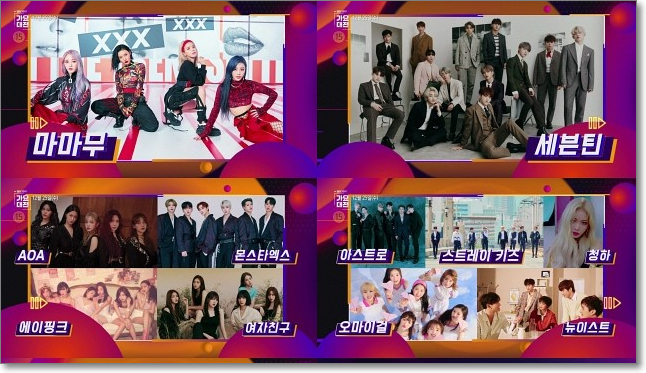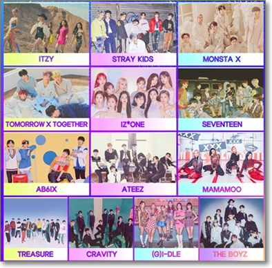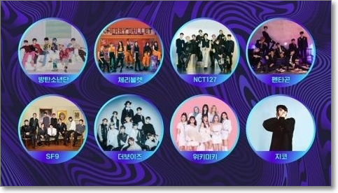 2019년에는 방탄소년단, 트와이스, 레드벨벳, 갓세븐, 마마무, 세븐틴, AOA, 몬스타엑스, 에이핑크, 여자친구, 아스트로, 스트레이 키즈, 청하, 오마이걸, 뉴이스트, NCT DREAM, ITZY, 엔플라잉, NCT 127, 투머로우바이투게더